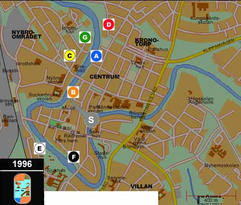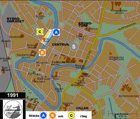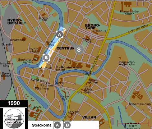 Nya uppdelningen på sträckorna "A och B" 1990.