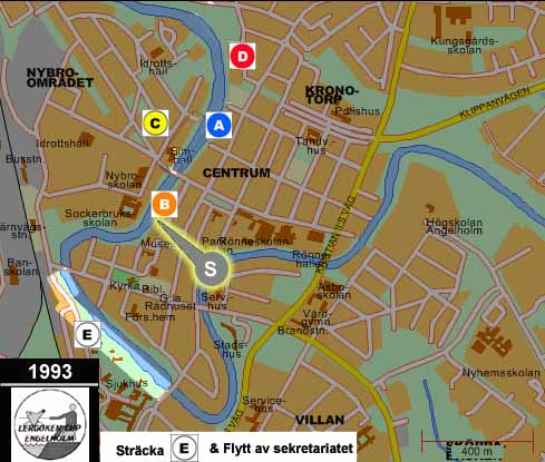 Flytten av sekretariatet samt invigning av sektion E 1993. Data-beräkning införs. LGC fyller 5 år.